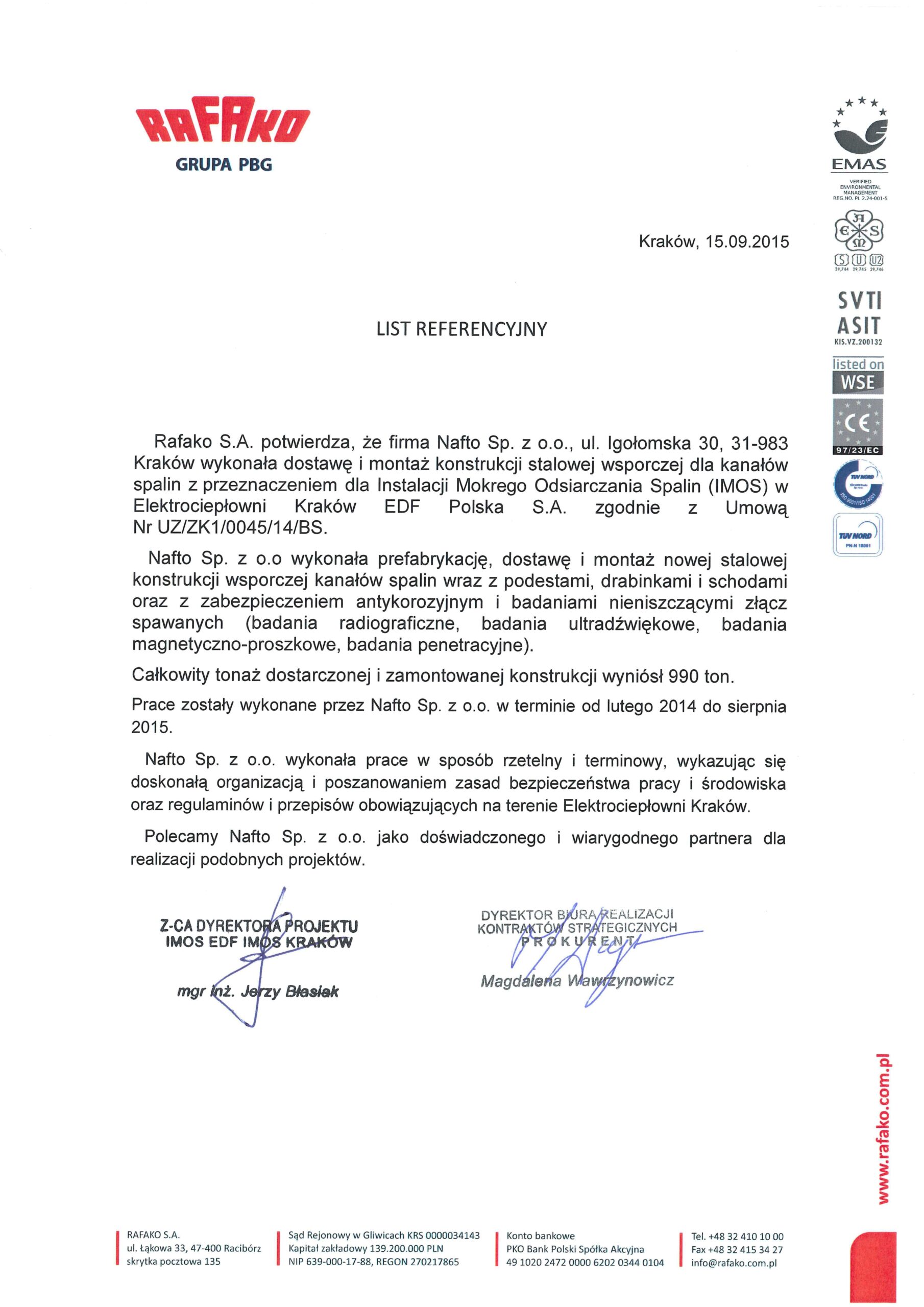 Supply and erection of supporting steel structure of flue gas ducts for Flue Gas Desulfurization (FGD) System, Krakow Power Plant, EDF Polska S.A.