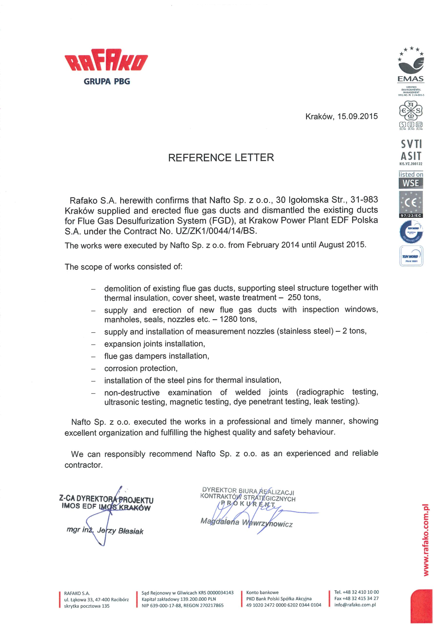 Supply and erection of Flue Gas Ducts and demolition of existing ducts for Flue Gas Desulfurization (FGD) System, Krakow Power Plant, EDF Polska S.A.
